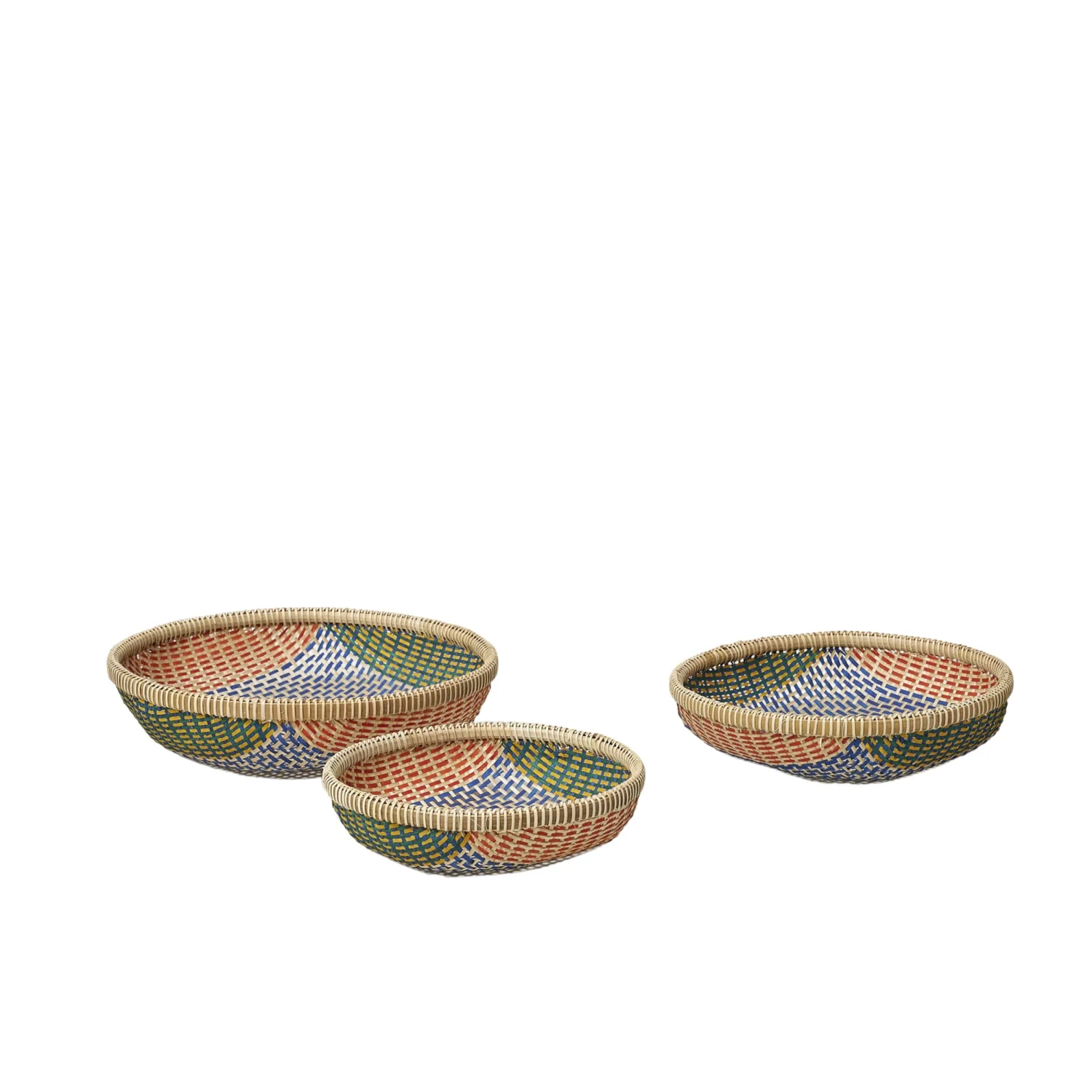 TheThao Woven Basket replaces plastic with sustainable bamboo and features a bold, dynamic colour palette. Display as an art piece or as a functional storage solution. Each basket is handwoven in a small village in Northern Vietnam, using traditional techniques passed down through generations. This craftsmanship celebrates artistry and makes each basket one of a kind.