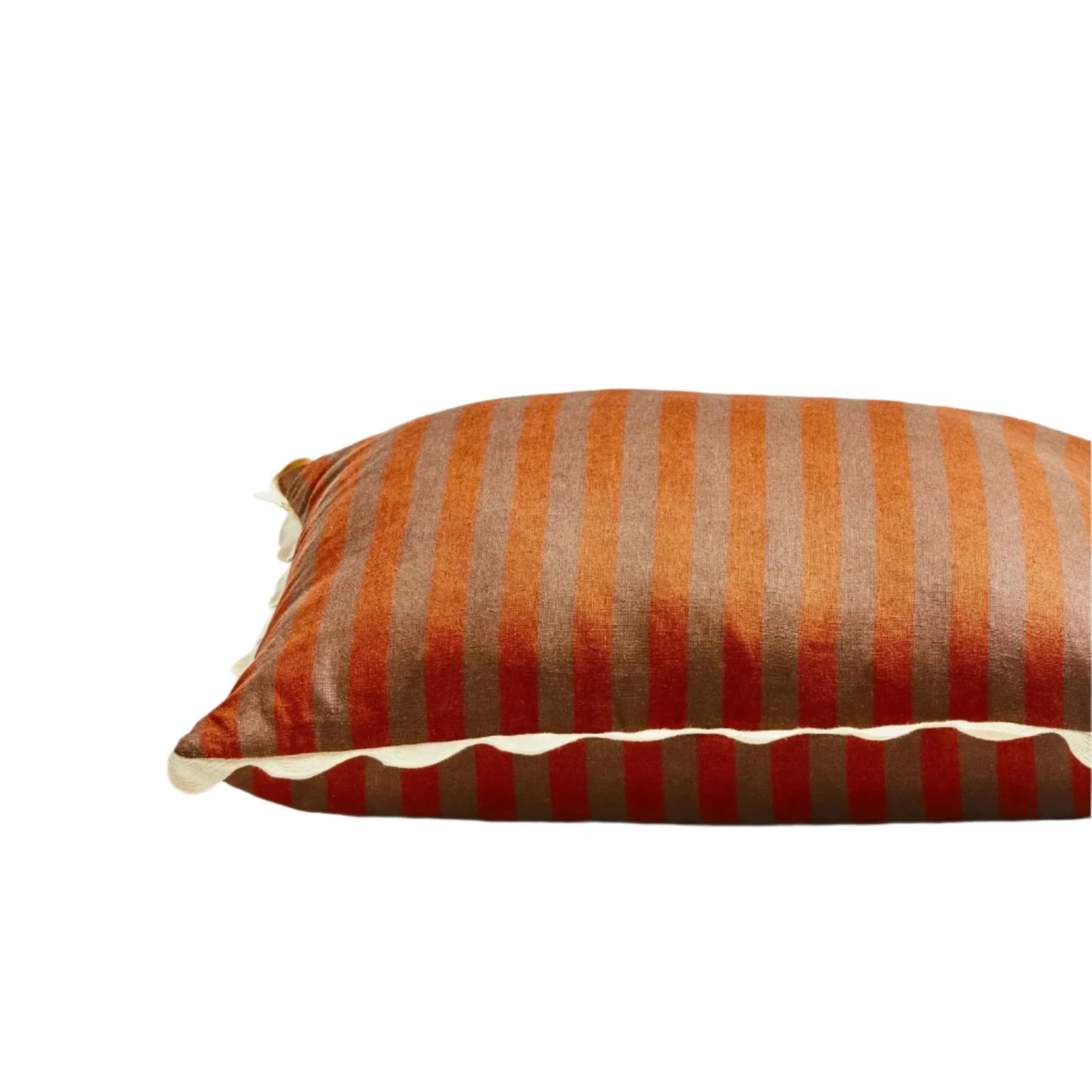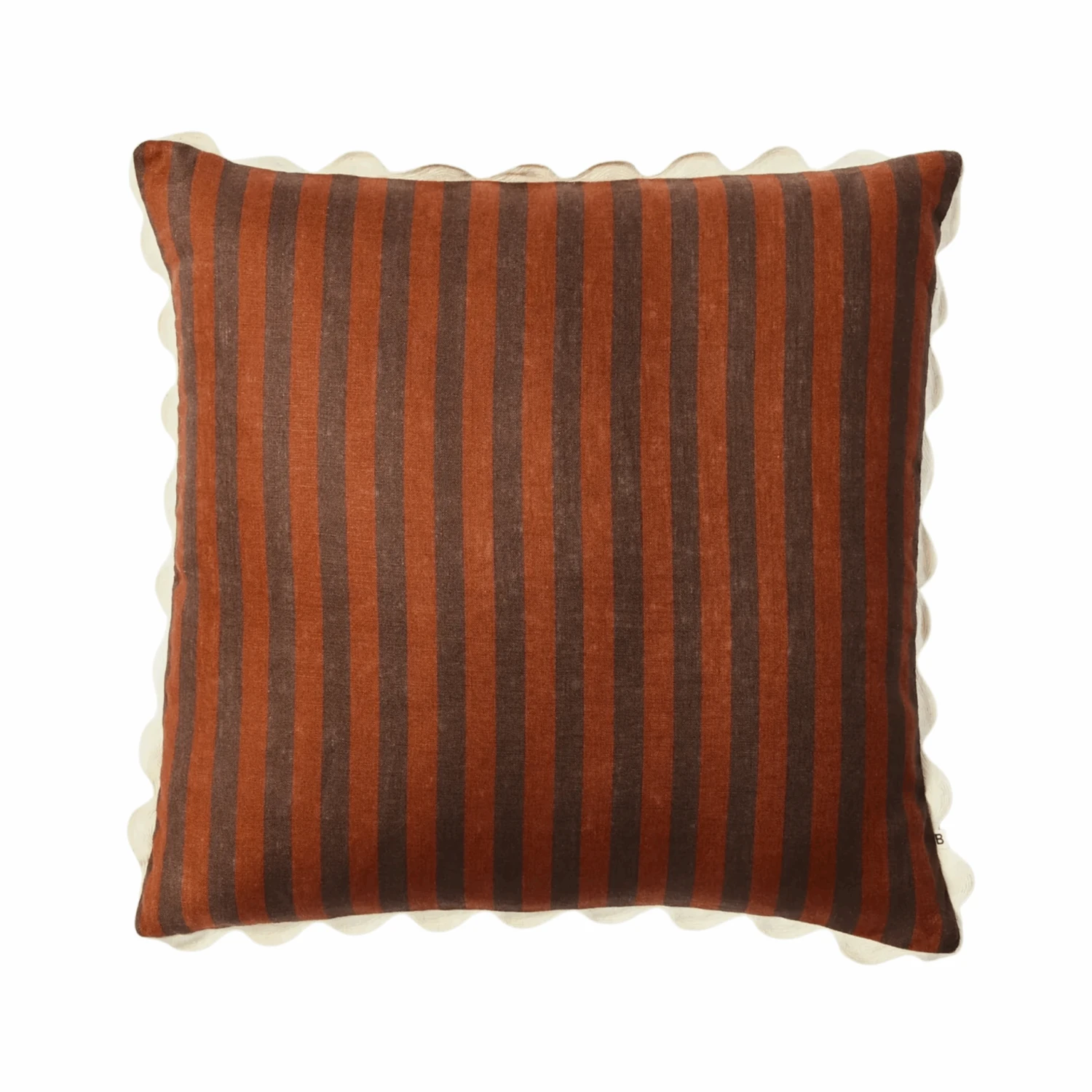 Taking inspiration from interior textiles and wall hangings found in seventies interiors, our Thin Stripe Chocolate Cushion brings warmth and richness to your living space. The ideal companion for vibrant patterns or textured fabrics, this brown striped cushion is the perfect addition to the cushion selection for your lounge room.