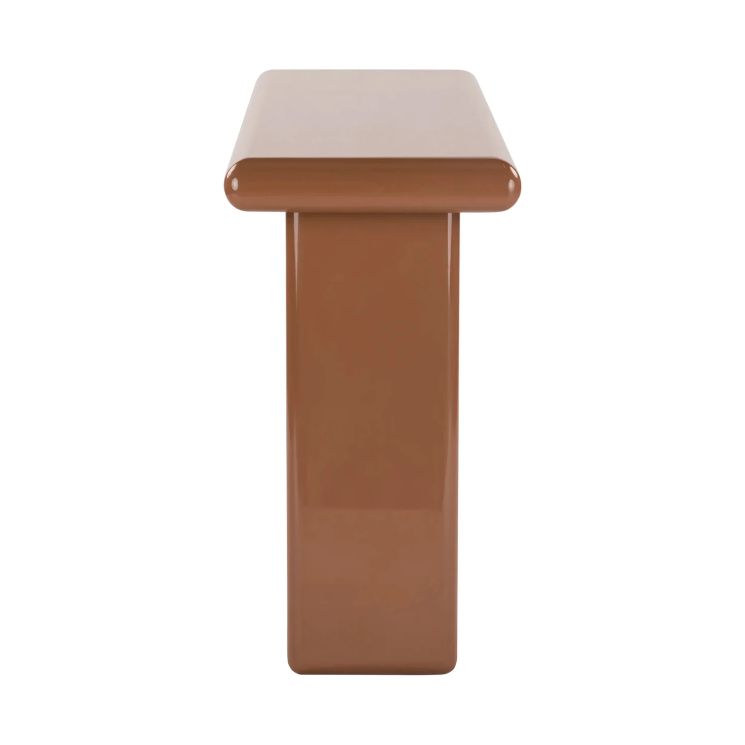 Make a statement in your entryway or hallway with the Toto Console Table in Brick. The rich, red-clay tone is elevated by a glossy finish that radiates warmth and depth. Robust dimensions provide ample display space, while the softly rounded profile keeps the look approachable and sculptural.