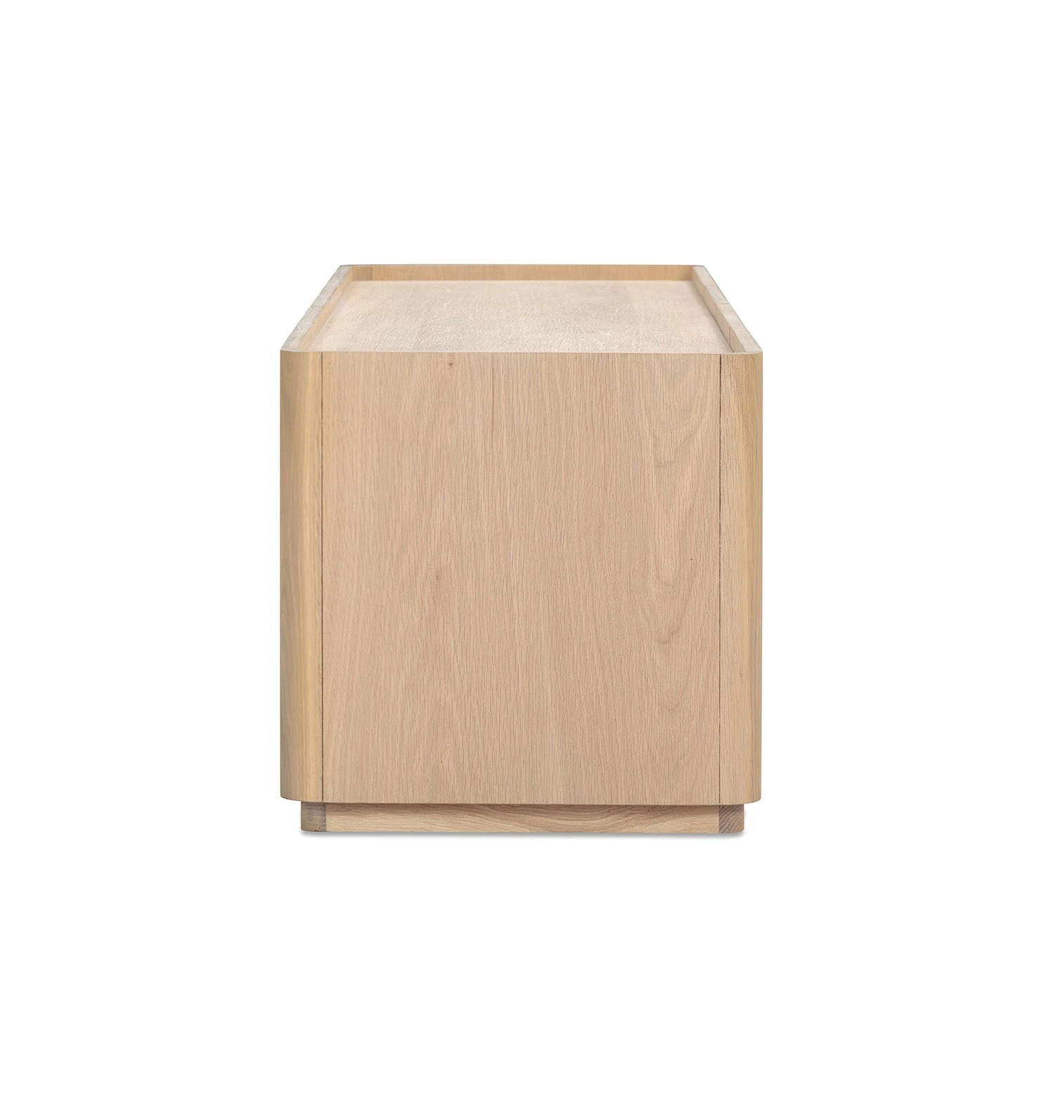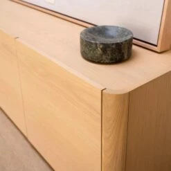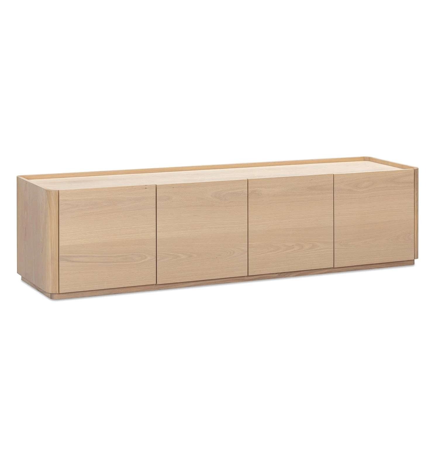 The Trim range showcases minimalist yet eye-catching designs. The Trim collection incorporates sleek lines, and unique detailing making it perfect for those seeking a distinct and modern aesthetic in their living spaces. The Entertainment Unit features generous space within four doors, including an adjustable shelf.