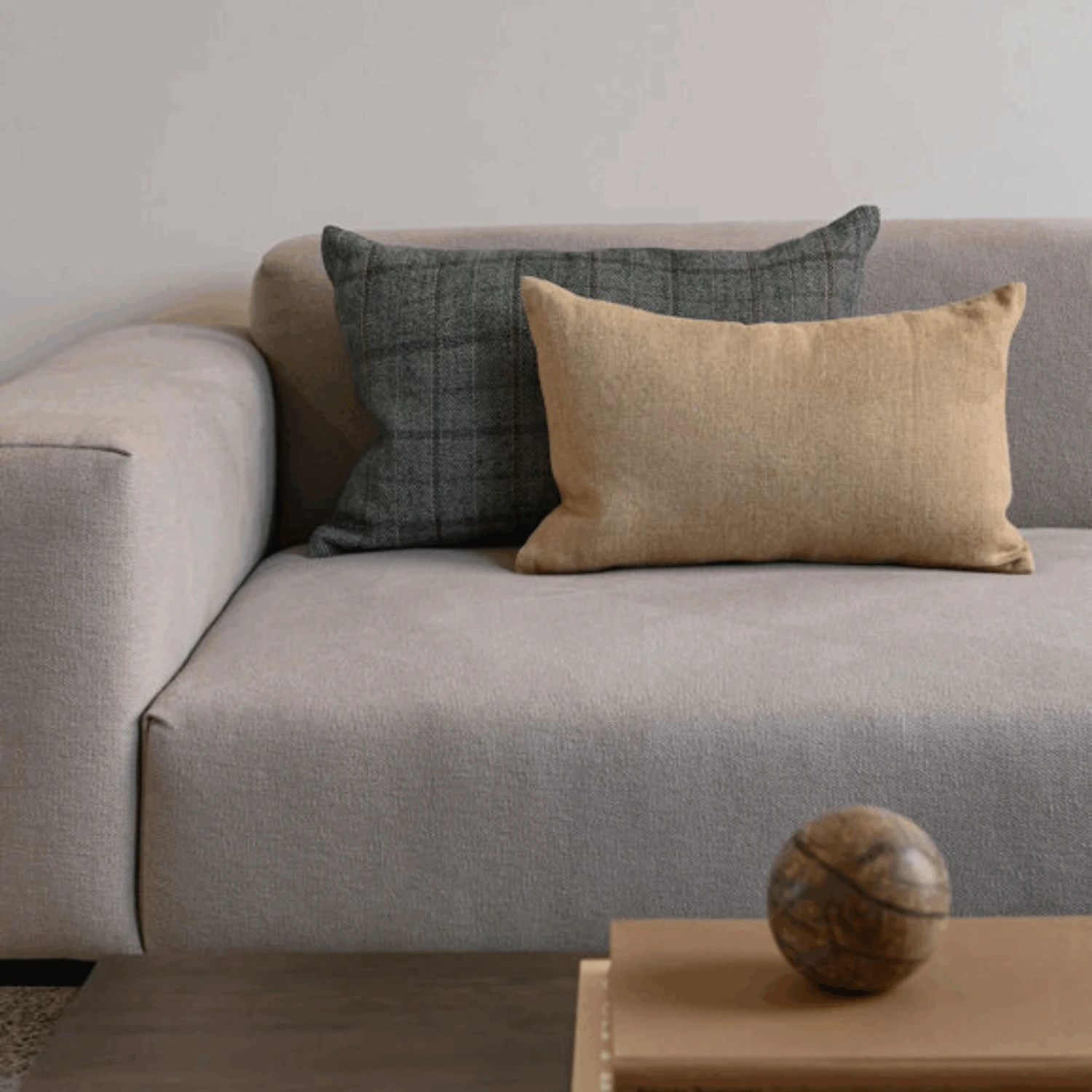 Citta’s Twill Cushion Cover combines two classic techniques, a distinctive twill weave and a fine plaid pattern to create a heavily textured finish. The cushion cover combines fresh eucalyptus and custard to create a playful palette. Made with a blend of jute, linen and cotton.