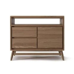 Compact Sideboard with 1 Door & 2 Drawers in Teak. Classic retro design but with a contemporary TWIST, this range encompasses simple, clean, rounded lines and a complimentary balance of modern aesthetics, functionality and eco aspects of FSC certified reclaimed Teak.