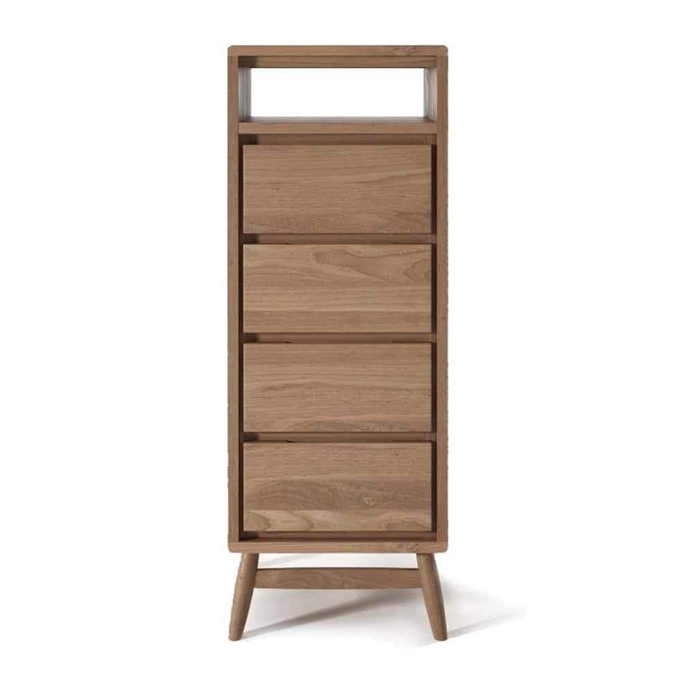 Tall Chest of 4 Drawers in Teak. Classic retro design but with a contemporary TWIST, this range encompasses simple, clean, rounded lines and a complimentary balance of modern aesthetics, functionality and eco aspects of FSC certified reclaimed Teak. Designed to exhibit fine lines and soft angles, the Twist is elegant, uncluttered and stylish.