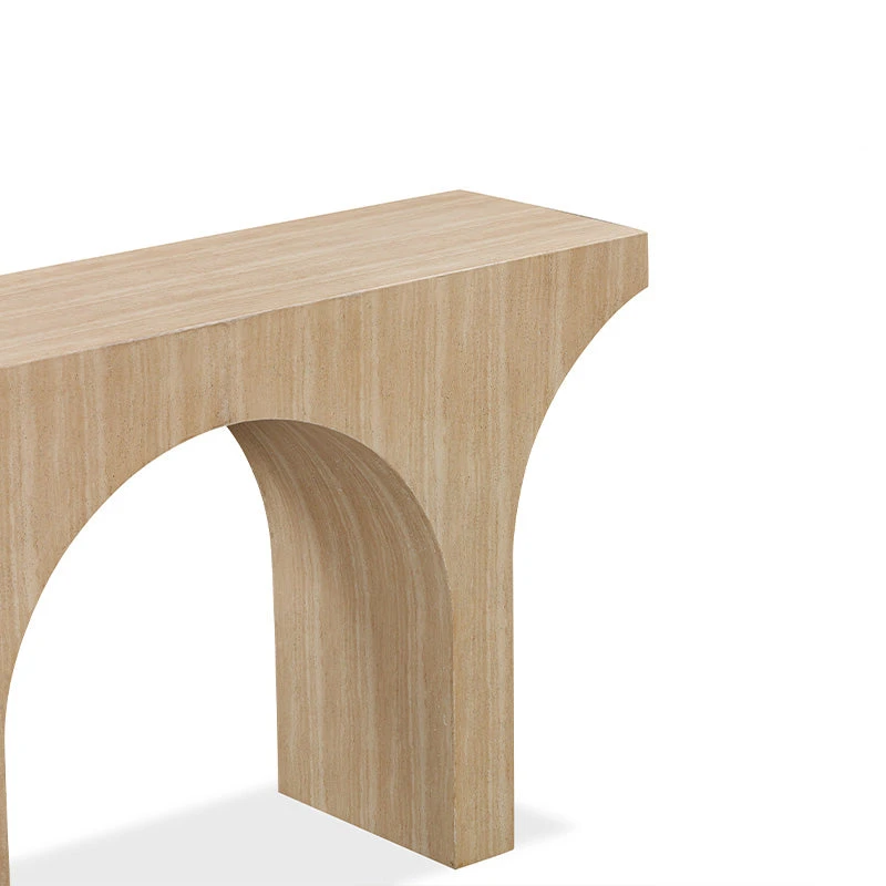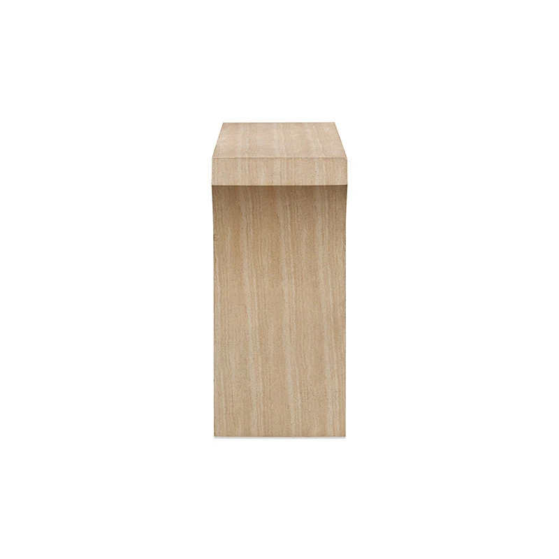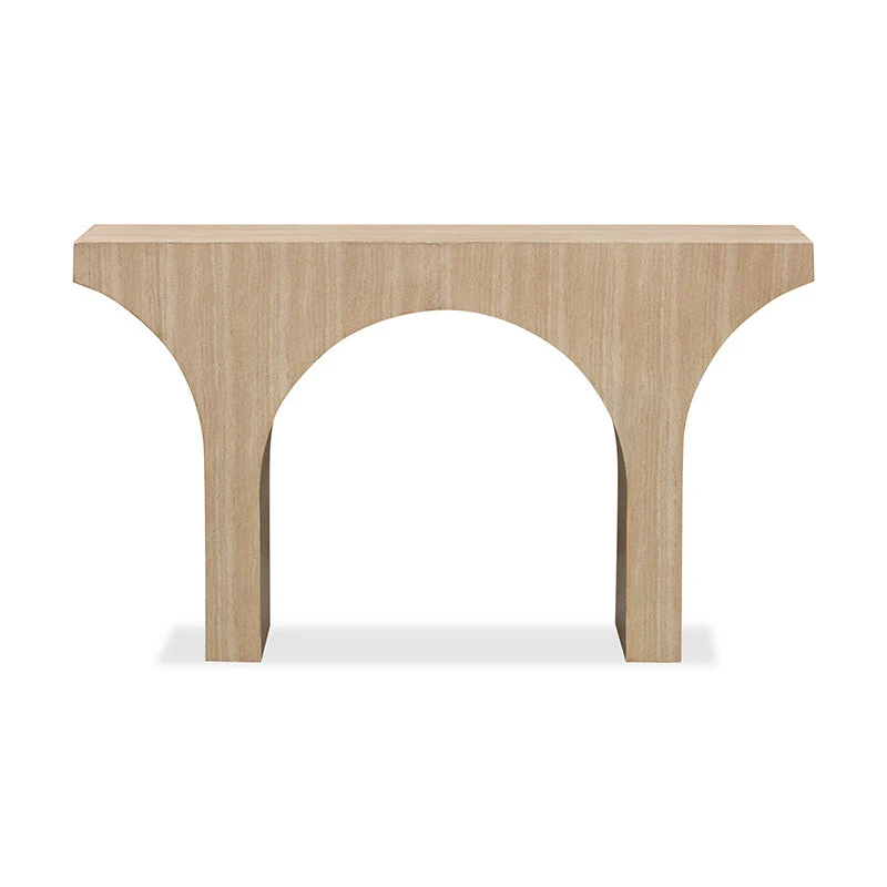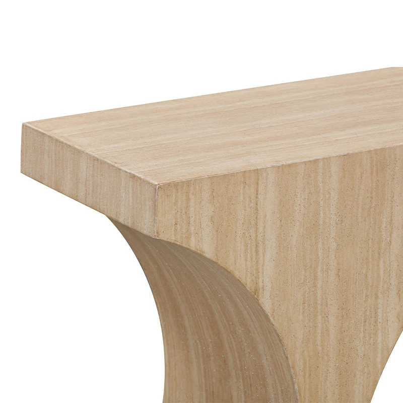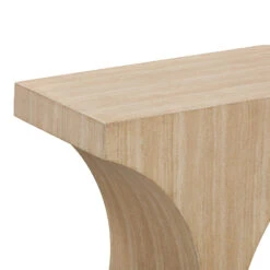 The Verge features a Travertine finish and an arching design that is sure to make a design statement. The curved leg detail is sure to make an impression in any space. The travertine showcases the beauty of this natural material.