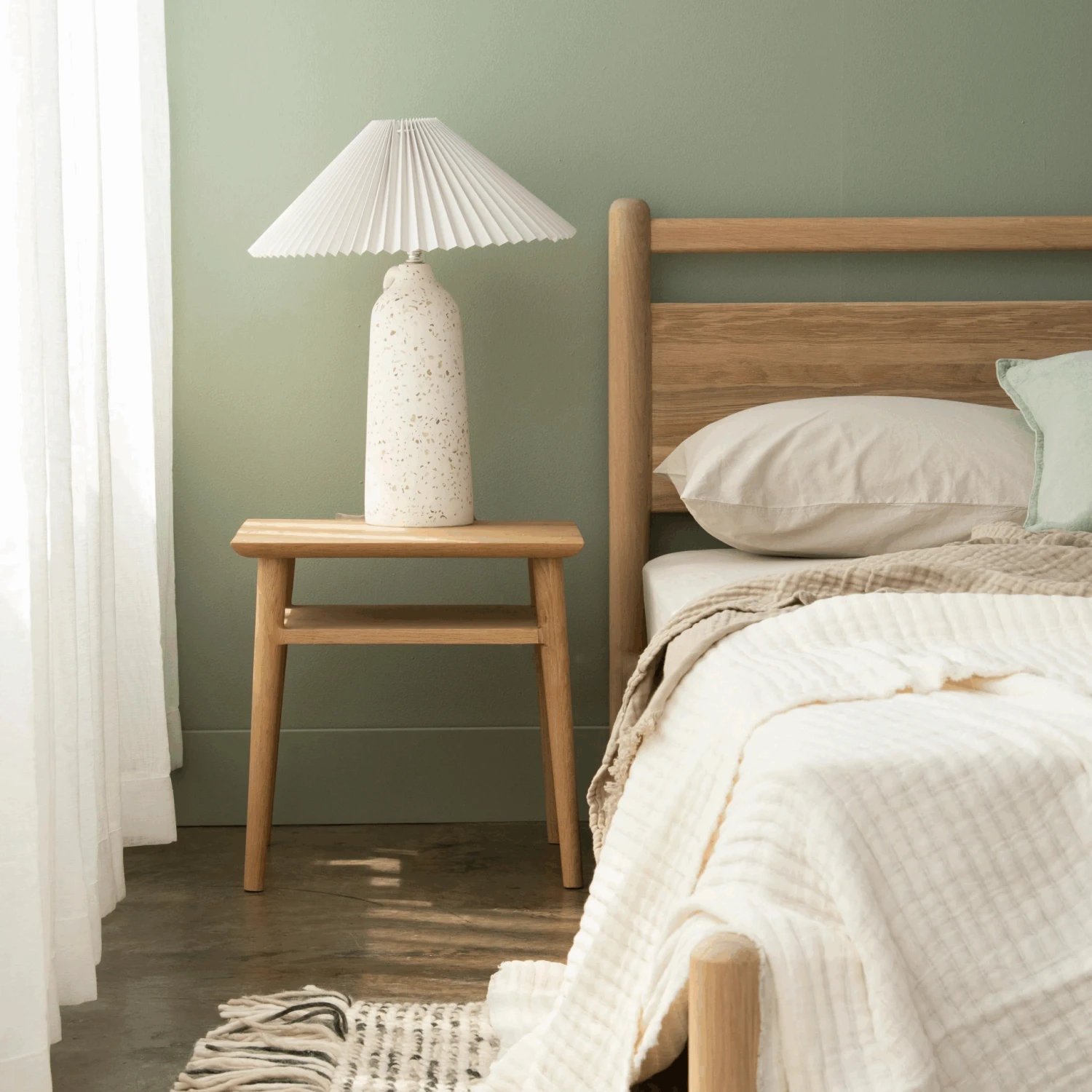 Vintage European oak bedside exudes simplicity of design with an open shelf. the perfect accompaniment to the Vintage bed range.