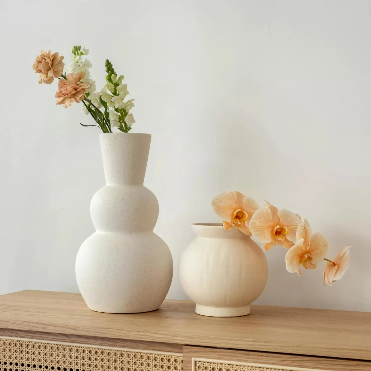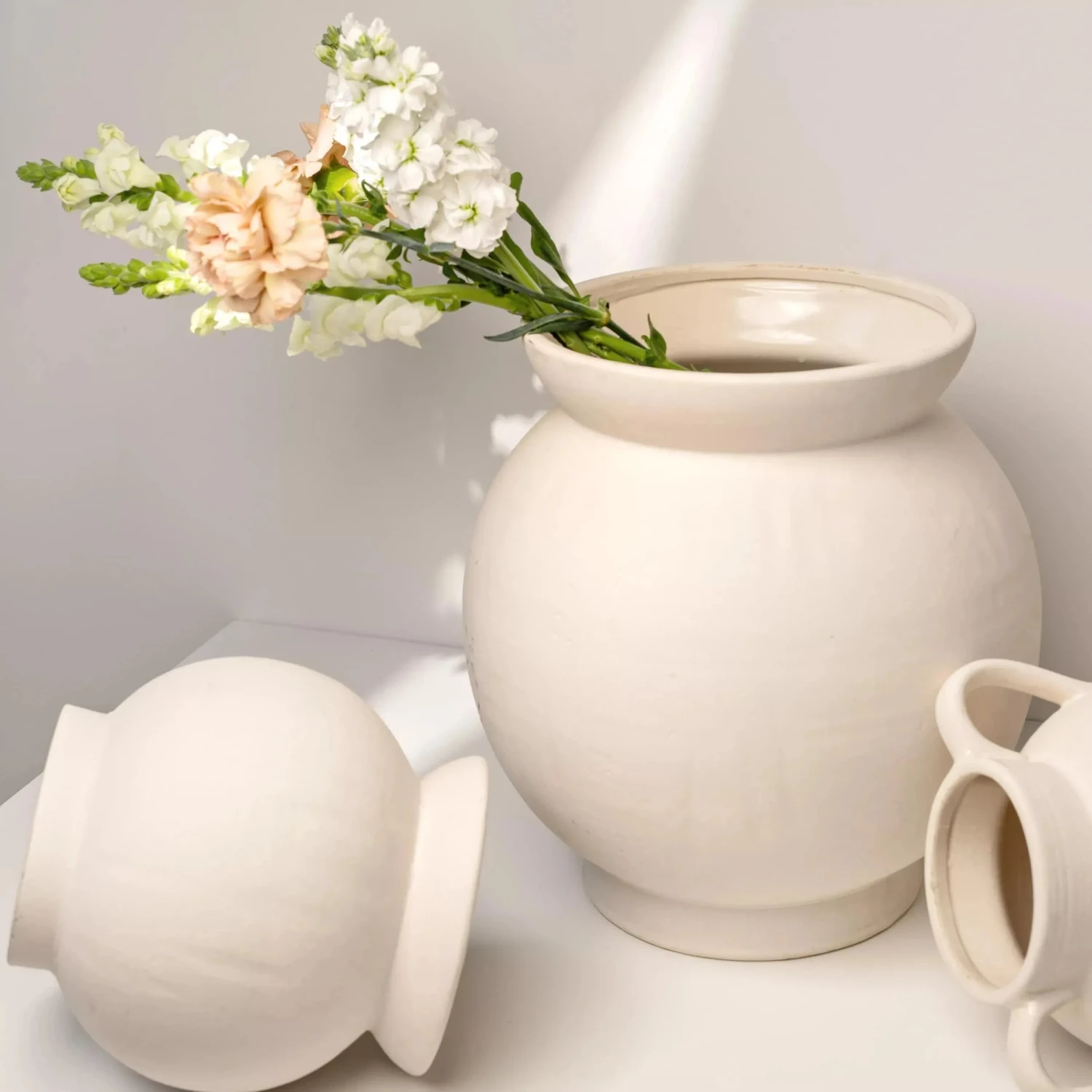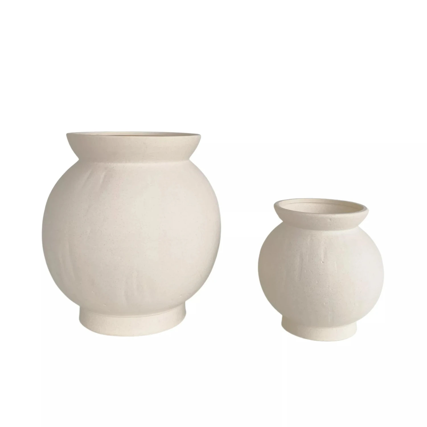 The matte Willow Pot is the perfect way to add a touch of elegance to your home décor. Made from ceramic, this ivory effortless silhouette features an organic etched like texture that fuses modern and natural vignette. Pair both sizes to add visual interest and layering to your space.